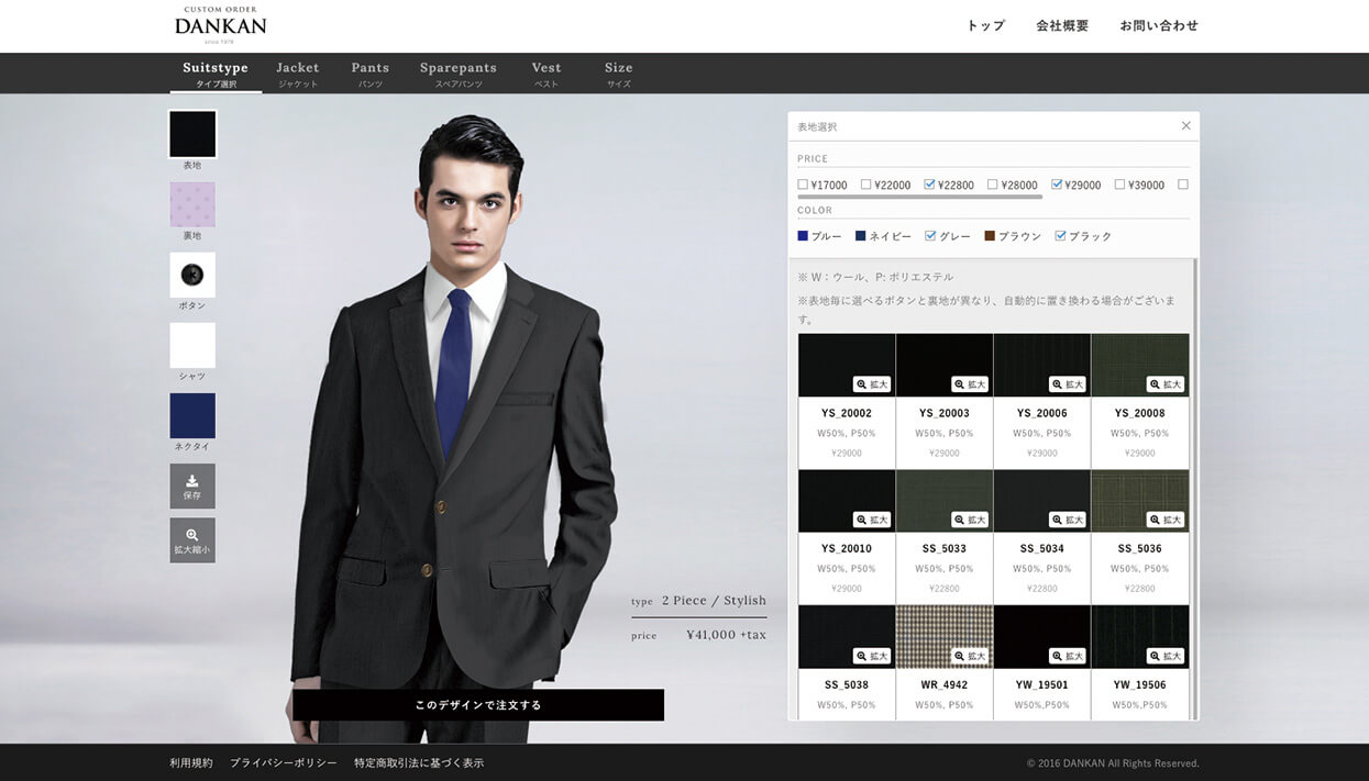 老舗オーダースーツ専門店「DANKAN(ダンカン)」様のスーツシミュレーターを構築させて頂きました。