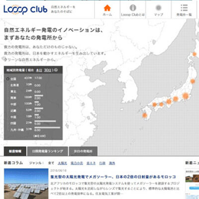 そのデザインをベースに、株式会社Looop様運営の発電所オーナー向け情報ポータル「Looop Club」のフロントエンドデザインリニューアルを担当させて頂きました。 全国発電所オーナーの発電量がほぼリアルタイムに可視化できるこのサイトは、エネルギー量の可視化だけでなく、管理画面内ではソーラーパネルの動作状況の履歴管理など、発電所オーナーに必須の機能が満載です。