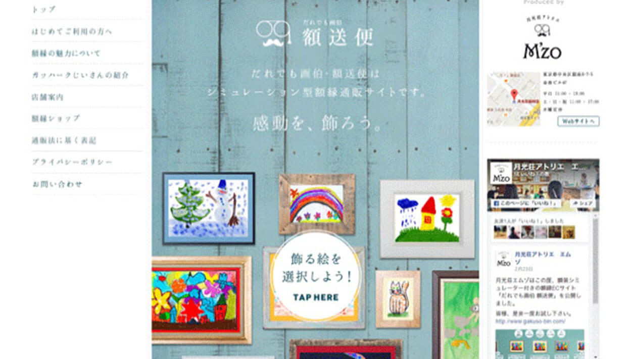 スマホで撮影した子供の絵にピッタリの額装をシミュレーション、そのまま注文できる通販サイト。