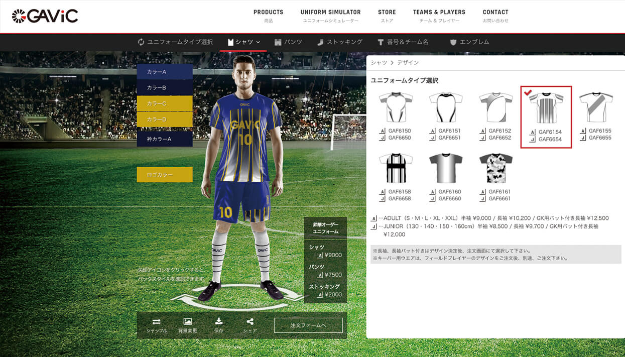 株式会社ロイヤル様によるスポーツブランド「GAViC」のユニフォームシミュレーターを制作させて頂きました。直感的なインターフェースでサンプルを自由にカスタマイズするだけで、誰でも数分でユニフォームデザインができ、作成したサンプルをWEB上で注文受付~決済まで行えます。