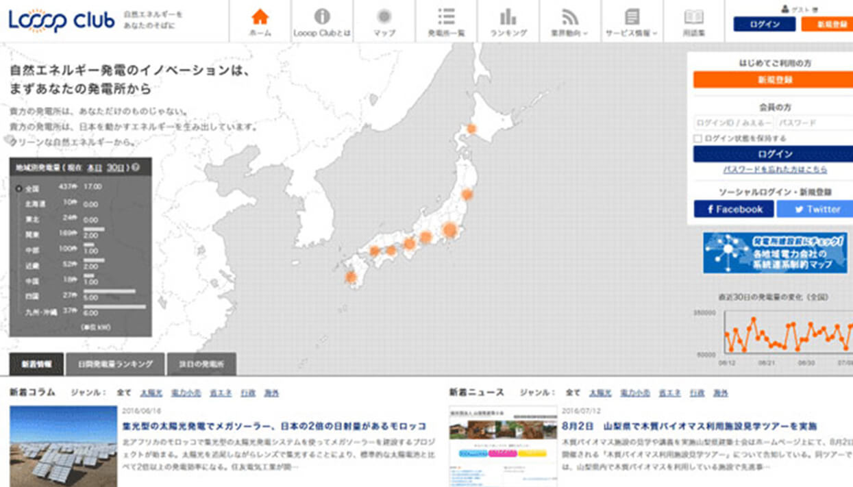 そのデザインをベースに、株式会社Looop様運営の発電所オーナー向け情報ポータル「Looop Club」のフロントエンドデザインリニューアルを担当させて頂きました。 全国発電所オーナーの発電量がほぼリアルタイムに可視化できるこのサイトは、エネルギー量の可視化だけでなく、管理画面内ではソーラーパネルの動作状況の履歴管理など、発電所オーナーに必須の機能が満載です。